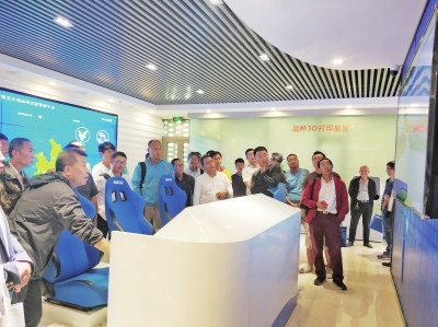 图为北京南繁单位的负责人在海南三亚北京南繁指挥部参观。