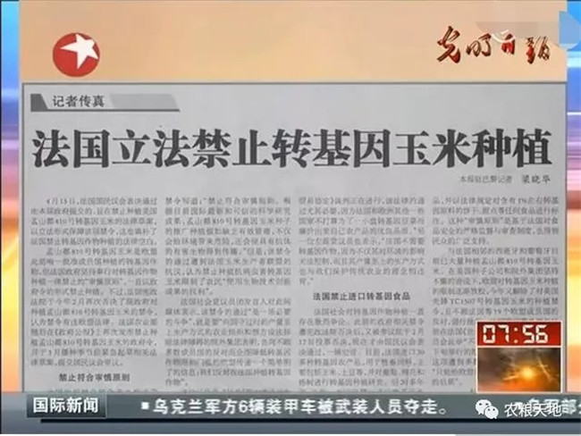 报道说:法国国民议会前天表解决通过了本届政府提交的旨在禁止种植美国孟山都810号转基因玉米的法律草案。