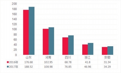 图72016年和2017年部分省农业产业化龙头企业纳税对比图