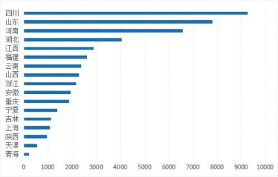 从各省企业分布情况来看,平均值以上的企业主要分布在山东、江苏、河南、福建、浙江等省份。从区域分布来看,东部地区的企业数量占据较大优势,企业资产总值也高于中西部地区。其中,山东省平均规模以上的企业最多,达到40家。湖北、陕西、广西、宁夏等中西部省份分布较少。