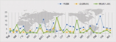 如图3所示,对各省农业产业化龙头企业数量占比与营业收入占比和企业利润率进行比较,可以更清晰地描述各省农业产业化龙头企业经营状况。