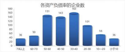 据调查数据显示,有736家龙头企业反馈有效资产负载情况数据,其2017年资产负债率平均值为40.99%,高于其均值的企业有362家,均值为50.66%。从分布看,龙头企业间资产负债率相差不大。企业数量在各资产负债率区间下基本围绕均值呈纺锤型分布,资产负债率在30%-60%范围内的企业全部企业数量的62.1%。