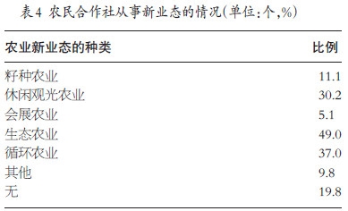 农民合作社不断引入新技术,发展新业态。就合作社从事新业态情况进行分析,在接受调查的合作社中,从事生态农业的最多,其比例达到49.0%。从事循环农业、休闲观光农业的占比次之,分别为37.0%、30.2%。从事会展农业的最少,其比例5.1%。另外,有43.8%的合作社从事了两种及两种以上新业态,有19.8%的合作社未发展新业态。