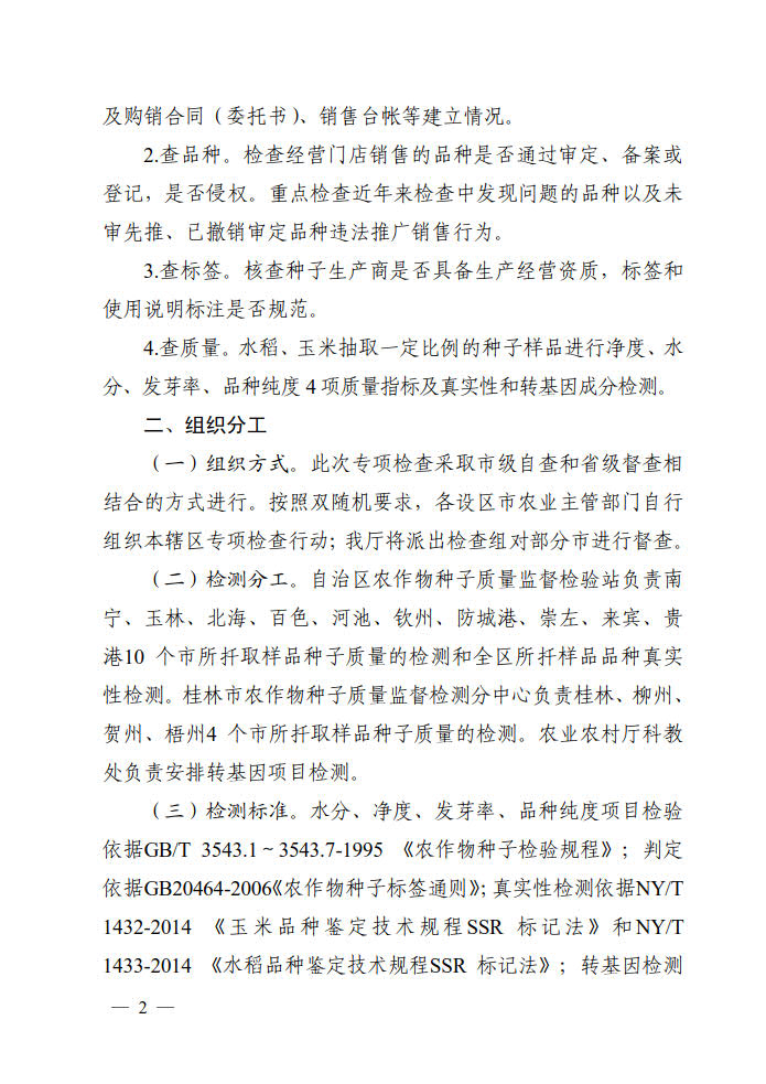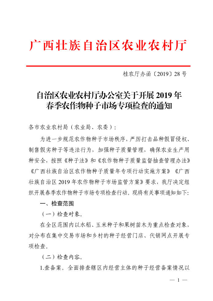广西开展2019年春季种子市场检查专项行动通知