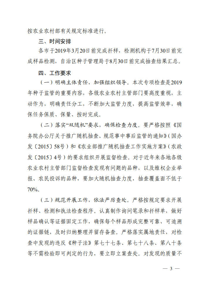 自治区农业农村厅办公室关于开展2019年春季农作物种子市场检查专项行动的通知
