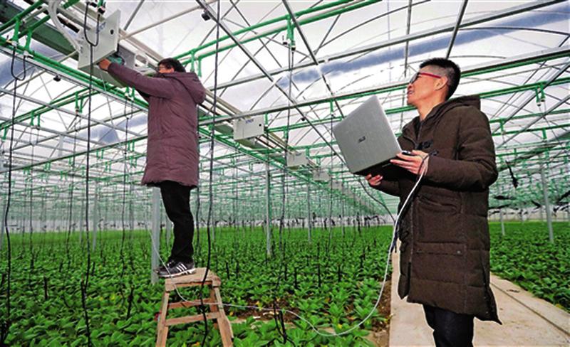 近日,在浙江湖州高新区的“壹伍田园”大棚中,技术人员正在调试设备。