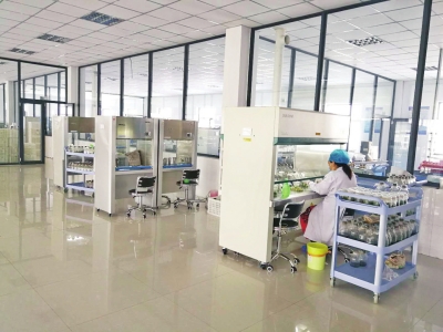 草莓良种繁育中心的实验室里,实验人员正在为草莓种苗进行脱毒处理。