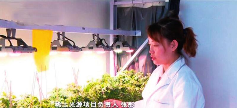 稀土光源项目负责人张彤介绍说,该灯可让植物的开花、结果过程提前,可促进壮苗的形成,提升植物的VC含量、糖度以及酸度,使果子的味道更好。