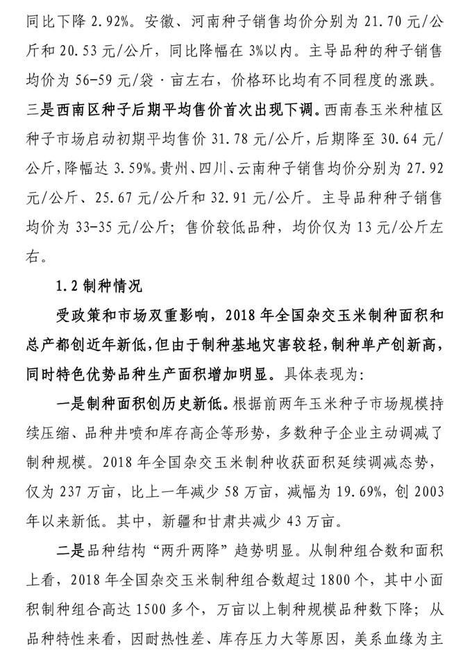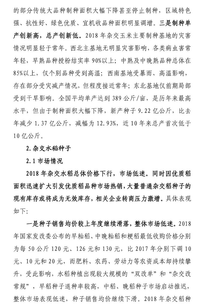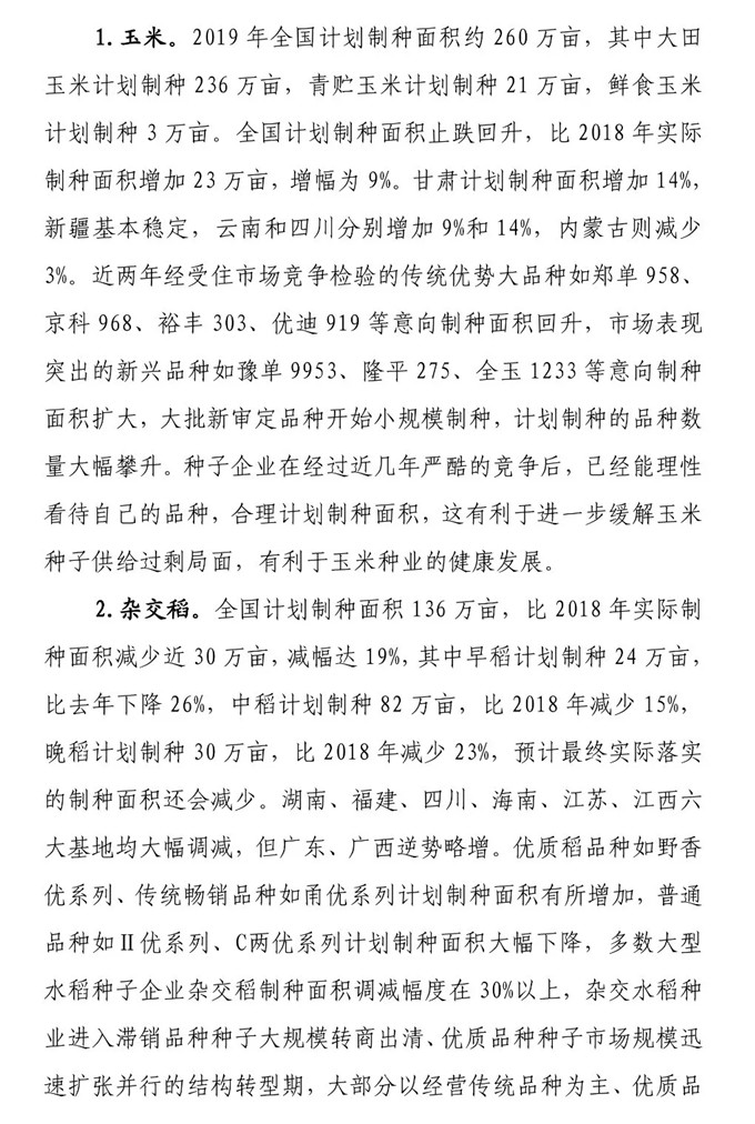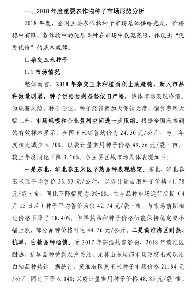2018-2019年全国重要农作物种子市场与供需形势分析报告