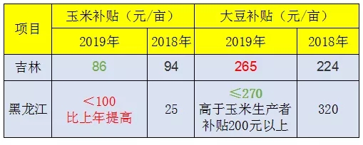 2019年黑龙江、吉林玉米和大豆生产者补贴