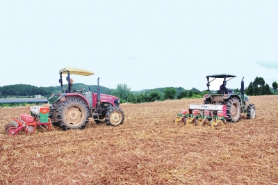 本报讯(刘玉明记者李传君)“玉米机播可一次完成开沟、播种、施肥、镇压等多道工序,省时、省工,还节约成本。”四川省三台县宏梅家庭农场主林红梅一边在行间查看有没有露种露肥现象,一边告诉记者。