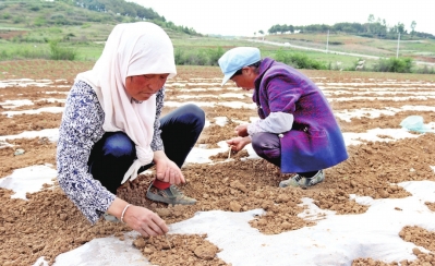 图为该县草海镇民族村村民正在种植藜麦。刘军林文/图