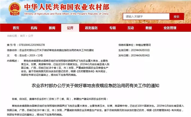 近日,农业农村部印发《农业农村部办公厅关于做好草地贪夜蛾应急防治用药有关工作的通知》(以下简称《通知》),在专家论证的基础上,提出应急用药措施。