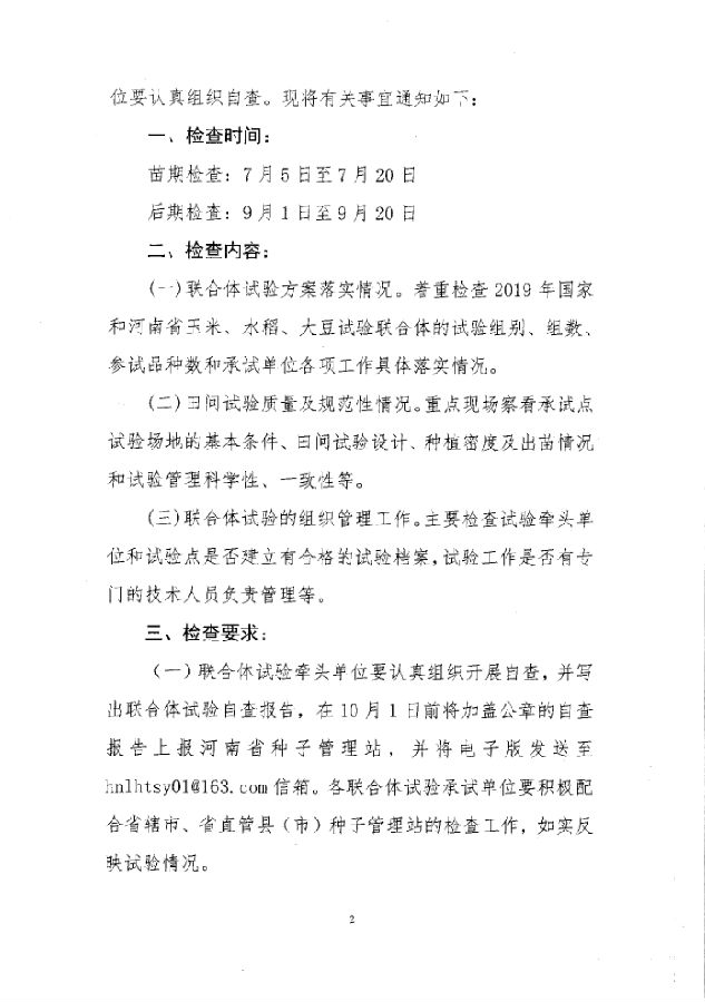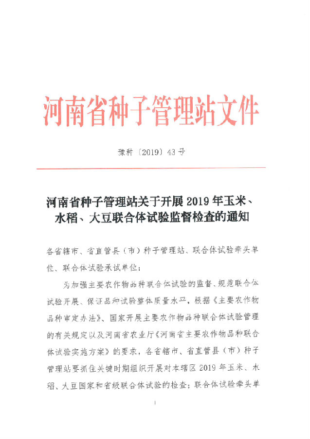 河南开展2019玉米、水稻、大豆联合体试验监督检查通知