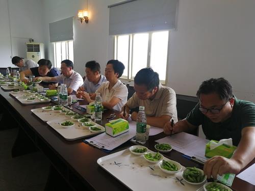 管理站在三峡农科院甘宁基地,首次举行了鲜食大豆品种食味鉴评会。会上,专家组按照鲜食大豆品种食味鉴评程序,经过认真品尝、细致评分和充分讨论,对今年参加我市区试的10个鲜食大豆品种的食味表现进行了评价。