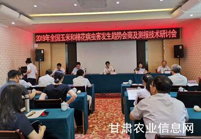 7月22-24日, 2019年全国玉米和棉花病虫害发生趋势会商及测报技术研讨会在兰州召开。会议由全国农业技术推广服务中心测报处姜玉英副处长主持。省农业农村厅梁仲科副厅长出席开幕式并致辞。来自全国农业技术推广中心、中国农科院植物保护研究所、吉林省农科院植保所、云南农业大学和国家气象中心及31个省(区、市)植保植检站的病虫测报专家和技术人员共50人参加了会议。