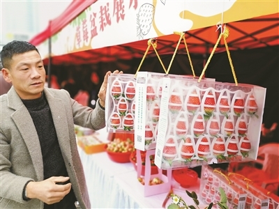 今年尚田提出“‘莓’行天下”构想,推动草莓走向全国。当天活动现场,记者看到莓农推出的两款草莓新包装,一种是单盒双层按个摆放,类似超市里售卖的盒装馄饨,另一种是草莓立体“防护衣”,不仅直接展示果品,还更利于草莓的长途运输、销售,不会被挤压损坏,帮助农户增收。