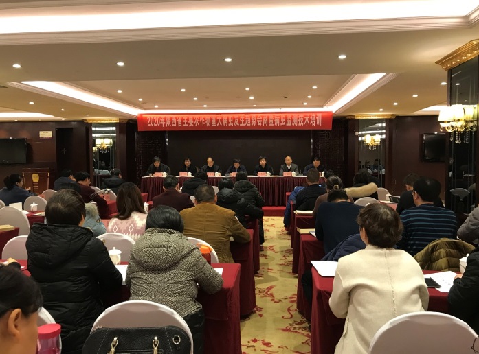 1月14-16日,2020年全省农作物重大病虫发生趋势会商暨病虫监测技术培训在西安举办,陕西省农业农村厅副厅长宁殿林参加会议并讲话,中国农科院植保所、河南省农科院植保所、省生物农业研究所、西北农林科技大学植保学院、省气象局等专家教授进行培训并参与会商,各设区市,杨凌示范区和韩城市及50个县区分管领导及测报技术人员共120余人参加了培训及会商。