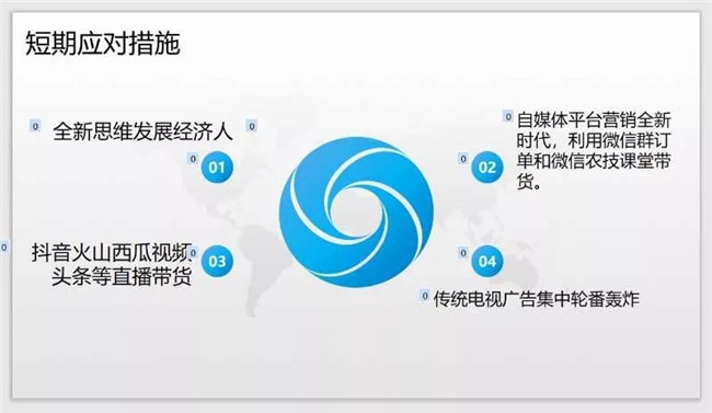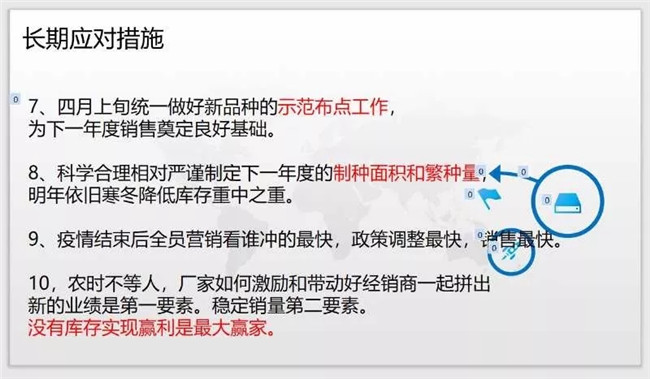杨大海还提出了10条长期应对措施,以帮助广大种企和经销商应对当前的形势,如设立村级加盟站、利用自媒体平台等。