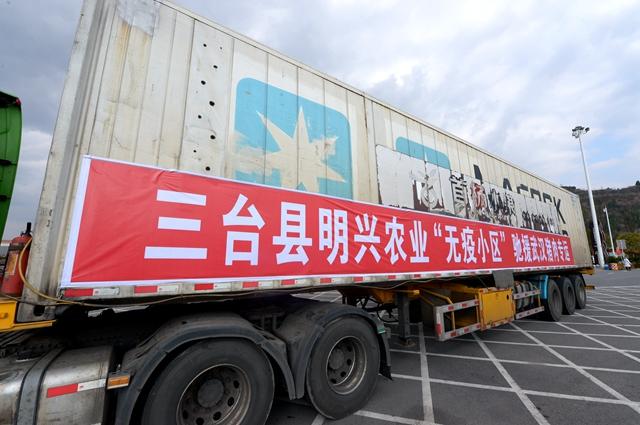 2月6日下午,由绵阳市三台县明兴农业公司捐赠武汉的价值150万元、共20吨自产的优质猪肉从三台出发,驰援武汉,把一份真情和爱心献给抗击疫情一线的武汉人民。