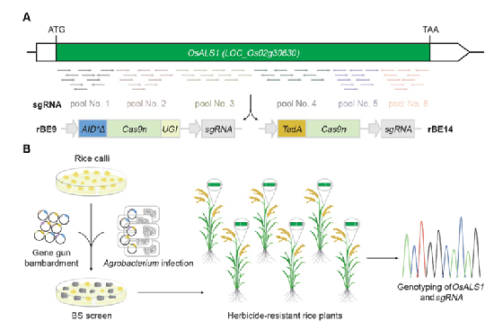 该团队在前期开发一系列单碱基编辑器基础之上,提出了水稻内源靶标基因的定向进化技术理念,在水稻细胞内人工模拟自然界基因的长期进化过程,短时间内创制成千上万个靶基因的新等位基因材料,用于育种筛选。