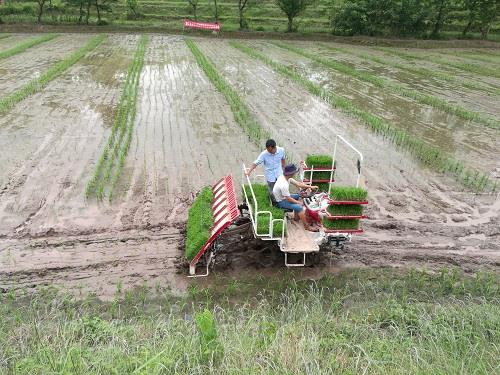 会议现场演示了钵毯苗机插秧全过程,1台“洋马”牌六行乘坐式插秧机在1小时内完成3亩母本插秧,比老式插秧机效率提升了近2倍。县农业农村委委员皮欣在现场会上指出,钵毯苗机插秧是目前国内最为先进的机插秧技术之一,不仅大幅度提高了插秧效率,而且可以通过变换齿轮调节插秧规格,满足水稻不同品种的生产需求,节本增效效果十分明显。普顺镇镇长赵守德表示,随着钵毯苗机插秧技术的成熟和推广应用,水稻制种产业全程机械化最后一道瓶颈得以解决,全镇的制种面积明年将会上一个新台阶。现场观摩的制种大户们对钵毯苗机插秧技术表现出浓厚的兴趣,纷纷表示明年将采用该项技术发展杂交水稻制种。