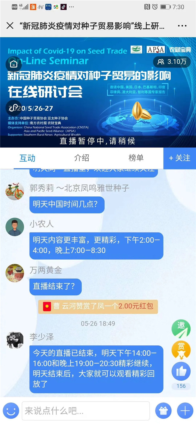 随着经济全球化,各国联系日益紧密,通过此次研讨会,我们要探讨的不仅是疫情对种子贸易的影响,更是解决方案,以及未来如何更好促进国际种子贸易发展。