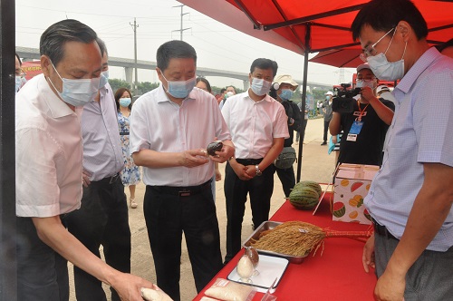 5月28日,正值2020武汉种业博览会在武湖农业生态园区开幕之际,省委农办主任,省农业农村厅党组书记、厅长肖伏清在参观春季蔬菜地展后,赴省现代农业展示中心鲜食玉米地展现场调研,省农业农村厅党组成员、省农科院党委书记刘晓洪,省农业农村厅党组成员、副厅长肖长惜陪同调研。武汉市政府有关负责同志,武汉市农业农村局主要负责同志,厅办公室、厅种业管理处、省蔬菜办公室主要负责同志参加调研。