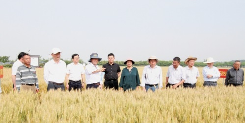 “本次活动共展示了51个品种,其中包括黄淮南片麦区品种31个,长江中下游麦区品种12个,西南麦区品种8个。所有参试材料均按当地的种植方式播种0.5亩大区,并划分为条锈病接种区、白粉病接种区、赤霉病接种区和病害防治区。在小麦灌浆初期和中期,分别调查各品种白粉病、条锈病和赤霉病发病情况,并按照相应国家农业行业标准和鉴定评价方法对各品种白粉病、条锈病和赤霉病的抗性进行评价。”许为钢表示,为深入推进“一控、两减、三高效”的育种目标,攻关组在节水节肥、多抗、优质品种选育上进行了深入探索,建立了抗白粉病、抗赤霉病、抗倒春寒等8个小麦育种鉴定平台,同时与产业技术体系密切结合,先后开展节水、优质强筋、抗赤霉病等品种展示观摩会、品质鉴评会等活动。