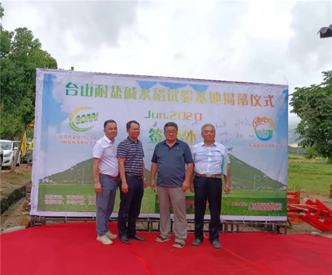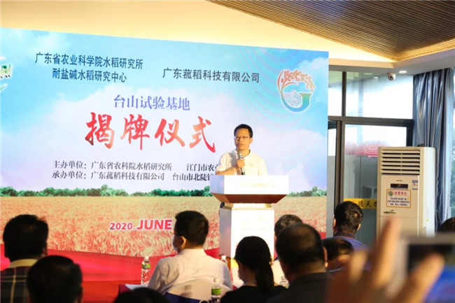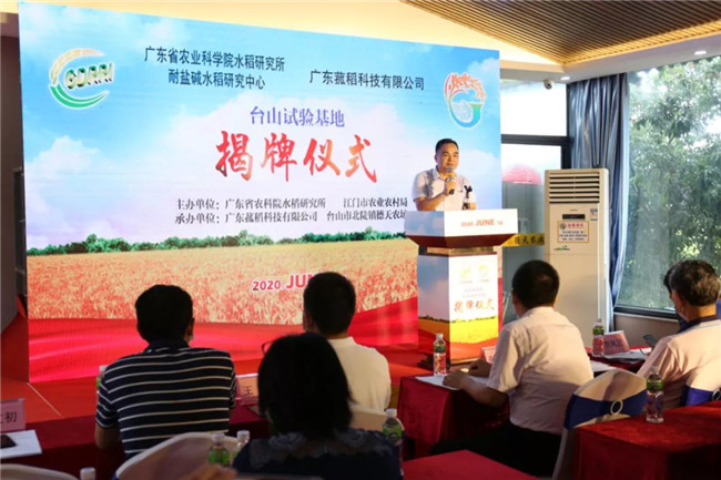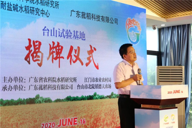 6月16日,广东省农科院水稻研究所联合广东菰稻科技有限公司建设的台山耐盐碱水稻试验基地在该市北陡镇寨门村德天农场举行挂牌成立仪式。