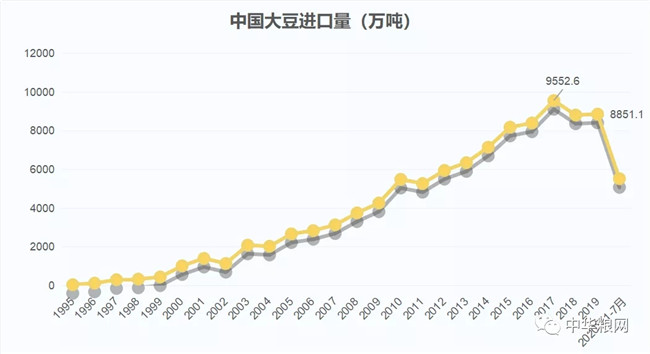 今年7月份我国大豆进口再破千万吨,达到1009.1万吨,至此,今年1-7月的大豆累计进口量已经高达5513.5万吨,同比增加17.7%,近两成。