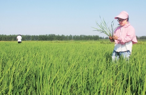 新品种的试验、示范和展示工作,通过对农作物新品种引进、良种繁殖、植物保护和绿色高效栽培技术研究,为农作物品种审定提供科学客观的试验数据,同时筛选适合农场种植的高产、优质、多抗新品种加以推广,为企业增效、职工增收提供科技支撑。近日,农场农科所技术人员对示范园区试验、示范和展示种植的水稻、大豆进行全面调查。图为技术人员对即将抽穗的水稻进行拔节、病虫害调查。