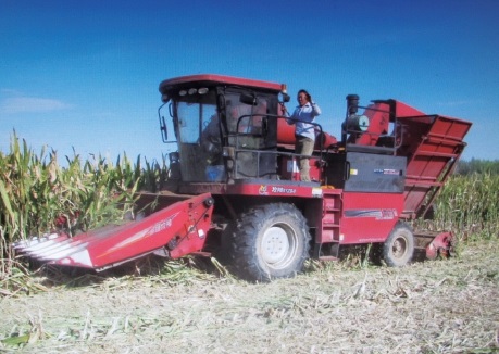 收获机在新疆生产建设兵团第八师一四三团五连三号地收获制种玉米。该团今年订单种植的6万亩制种玉米,由于采用高密度的栽培新模式,实行一膜两行、一穴一粒、膜上精量点播、膜下滴水滴肥新技术,亩均保苗7500-8000株,每亩施肥95公斤,夺得制种玉米丰收,单产550公斤,总产3300万公斤。仅制种玉米一项,可创产值8000余万元。