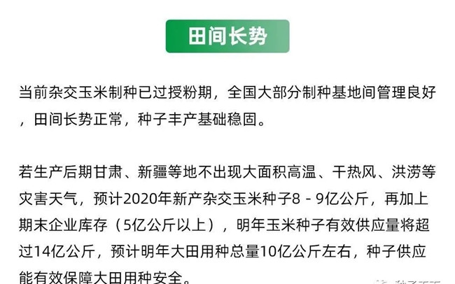 全国农技中心:杂交玉米制种面积减10%,甘肃制种品种超1700个!
