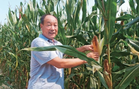 种粮大户王海俊正在查看即将收获的玉米。