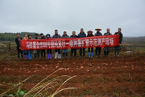 2020年11月2日,云南省农业技术推广总站邀请省市专家,对“合作88号”提纯复壮繁种示范项目进行田间实测。示范区种植一级种135亩,2020年3月10日播种,种薯为2018年组培苗大田直栽扩繁收获的原原种,2019年当地扩繁原种,用单垄单行种植,种植规格为70cm×33cm,亩施农家肥2000千克,N:P:K(15:15:15)复合肥80千克,中耕培土1次,晚疫病防控4次。专家组实测亩产2748.15千克,亩产值4397元,较农户自留繁种增产979.53千克、增收1567元。专家组认为提纯复壮后的“合作88号”表现出其原有品种特征特性,种薯示范增产效果显著,建议进一步提升配套栽培技术并示范推广。