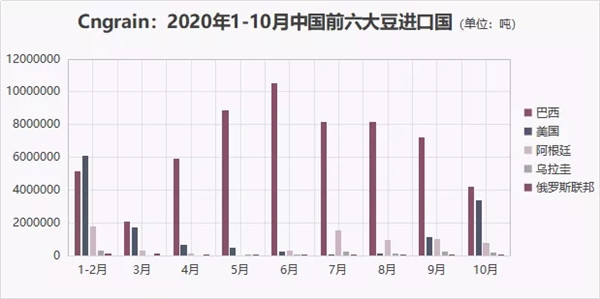 海关总署近日发布数据亦显示,2020年1~11月,我国进口大豆达9280.3万吨,增加17.5%,我国月度进口大豆数量已连续六个月创下历史同期最高。