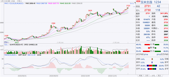 2020年以来,在国家玉米临储库存拍卖殆尽、产不足需缺口预期以及高需求预期的作用下,玉米期货与现货价格持续攀高。