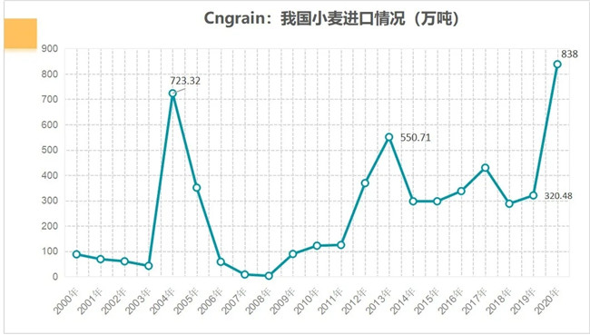 此外,中国小麦进口也达到创纪录的838万吨,比上年提高140.2%,进口量相当于全年配额964万吨的87%,而2019年中国只使用了小麦进口配额的三分之一。