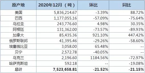 我国12月大豆进口量为752万吨,环比减少22%,同比下滑21%。