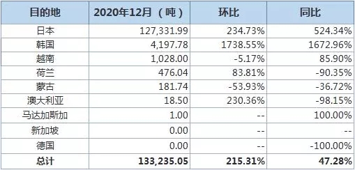 日本是最大出口目的地,当月对日本出口豆粕12.7万吨,同比攀升524%,环比增加235%。