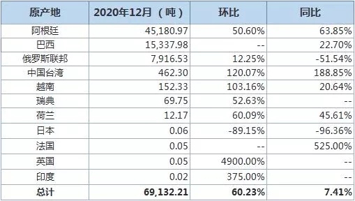 豆油进口方面,我国12月豆油进口量为6.9万吨,环比增加60%,同比增7%。