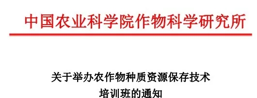 为促进相关单位提高种质库建库质量,确保资源以高初始质量、适宜的方式入库保存,最大程度延长种质保存寿命,及时监测预测出低活力种质,实现种质资源安全保存,节约成本,中国农业科学院作物科学研究所拟定于7月下旬在内蒙古呼和浩特市召开“农作物种质资源保存技术培训班”,现将有关事宜通知如下。