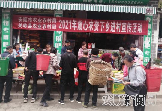 4月25日,安顺市农业农村局联合关岭县农业农村局在关岭县花江镇开展2021年全市放心农资下乡进村宣传活动。