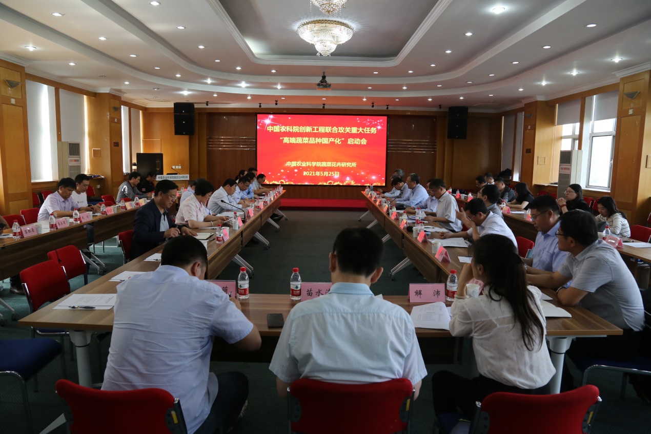 5月25日,中国农业科学院科技创新工程“高端蔬菜品种国产化”重大任务在京启动。中国农科院党组副书记、副院长吴孔明,中国工程院院士方智远、李天来出席会议。
