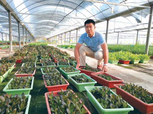 光普家庭农场负责人曹光普在大棚里劳作。 资料图