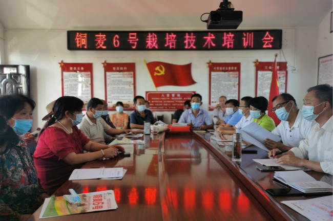 培训会由市种子管理站副站长梁增虎主持,大唐种业公司技术负责人从我市旱地小麦种植存在的问题,铜麦6号品种介绍、生物学特征特性方面进行了全面、细致的讲解;市种子管理站站长、铜麦6号选育人冯艳莉就粮食生产的重要性、种植铜麦6号的优势及如何做到良种与良法配套开展了培训,语言生动活泼,通俗易懂,赢得了参会群众的热烈掌声;最后,市农业农村局副局长刘随华与群众亲切交流并安排今年秋播及铜麦6号推广工作,他强调要提高政治站位,全面贯彻落实习近平总书记关于抓好粮食生产的重要讲话精神,充分认识粮食生产和粮食安全的重要性,扛稳粮食安全重任。区县要全力以赴抓好秋播及铜麦6号推广工作,千方百计扩大粮食播种面积和铜麦6号推广面积,推广普及良种铜麦6号和宽幅沟播配套技术,提高播种质量,特别是要抓好铜麦6号示范田建设工作,注重示范引领作用,积极完成市上下达工作任务。
