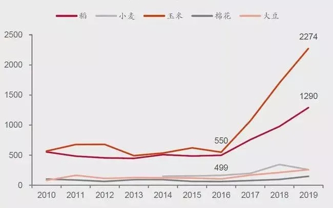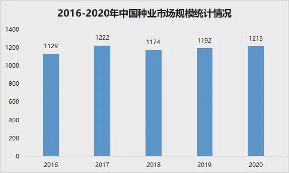 但2016年以后,由于我国粮食库存过剩,国家提出了以“调面积、减价格和减库存”为主的供给侧改革,种子市场开始承压,种业市场空间一度停滞在1200亿左右。