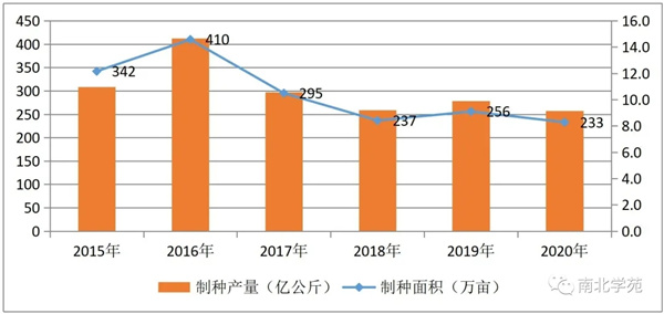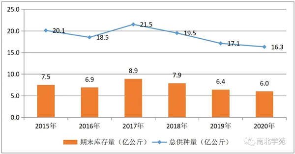 1、2021 年玉米制种面积较去年略有增加,如果生产年份正常,预计产种量与明年需求量持平,供需平衡,仍保持一定库存。2015-2020 年中国玉米供种量及库存量