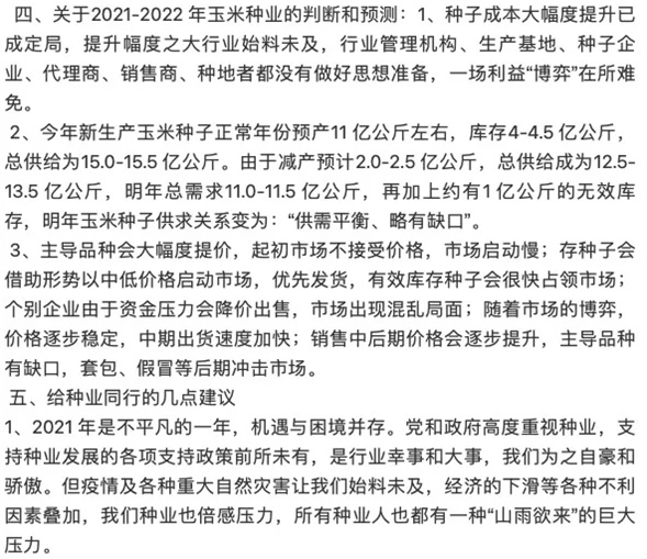 (6)呼吁全行业一致行动,遏制玉米种业制种基地继续涨价的行为;